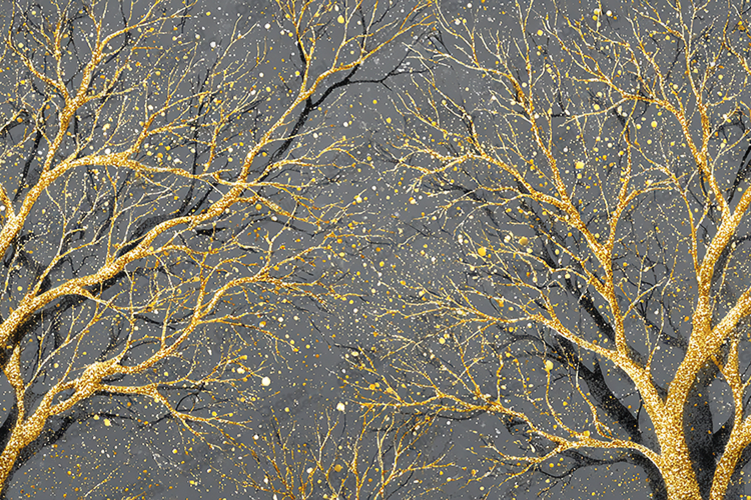 Golden Glitter Trees - Charcoal Gray Luxury Winter Scene