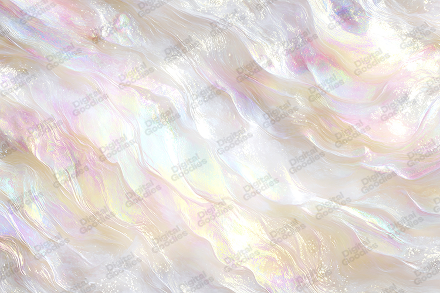 This high-resolution digital background features a breathtaking opalescent effect with fluid, liquid-like waves. The design showcases a pearlescent shimmer that shifts through soft pastel rainbows of pink, gold, and blue, reminiscent of mother-of-pearl or iridescent silk. Perfect for high-end wedding stationery, ethereal branding, dreamy website headers, and modern social media backdrops. The multi-dimensional glow and organic ripples provide a polished, professional look for sublimation printing, digital scrapbooking, and any creative project requiring a touch of magical, contemporary luxury.