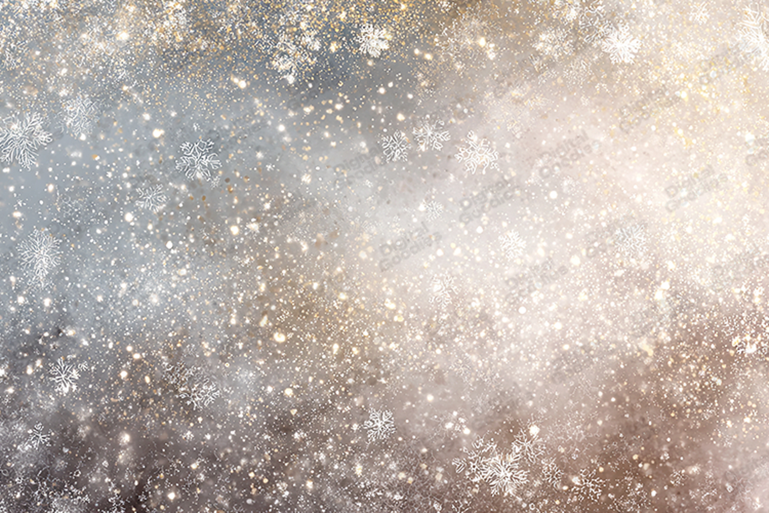This high-resolution digital background features a mesmerizing blend of gold and silver glitter particles, creating a brilliant "shimmering snowfall" effect. The design is layered with delicate white snowflake outlines and a soft, frosted texture that transitions from a warm champagne gold to a cool winter grey. Perfect for luxury holiday greeting cards, festive event invitations, elegant seasonal branding, and glamorous digital scrapbooking. The intricate mix of metallic sparkles and hand-drawn snowflake details provides a professional, high-end look for sublimation printing and premium winter decor.