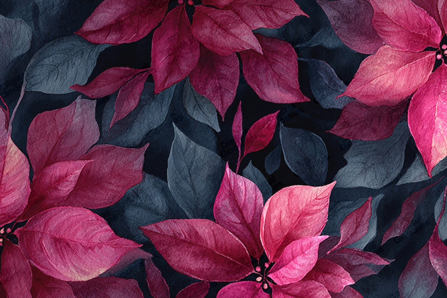 Holiday Digital Paper Botanical Sublimation Watercolor Winter Floral High-resolution Art Christmas Greenery Art Maroon Poinsettia Navy Botanical Art Plum Holiday Pattern Hand-painted Poinsettia Dark Moody Floral