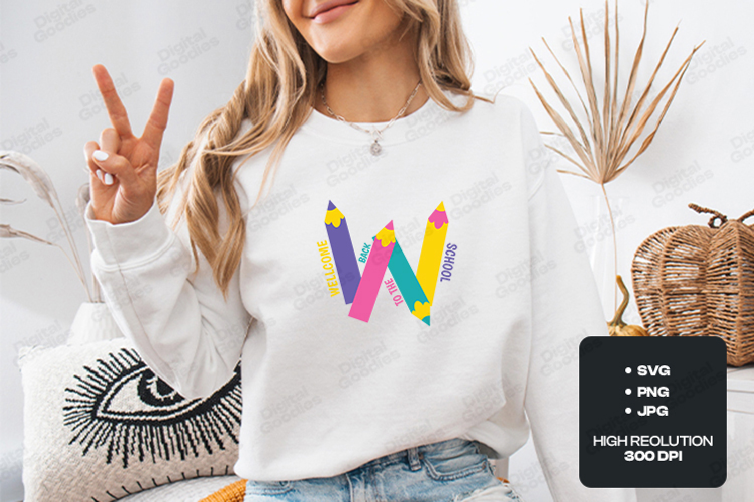 This high-quality digital illustration features a creative arrangement of colorful pencils spelling out a warm welcome, making it the perfect choice for teachers and students alike. Whether you are creating custom apparel for the first day of school or decorating a learning space, this playful and modern vector is ready for all your academic projects.