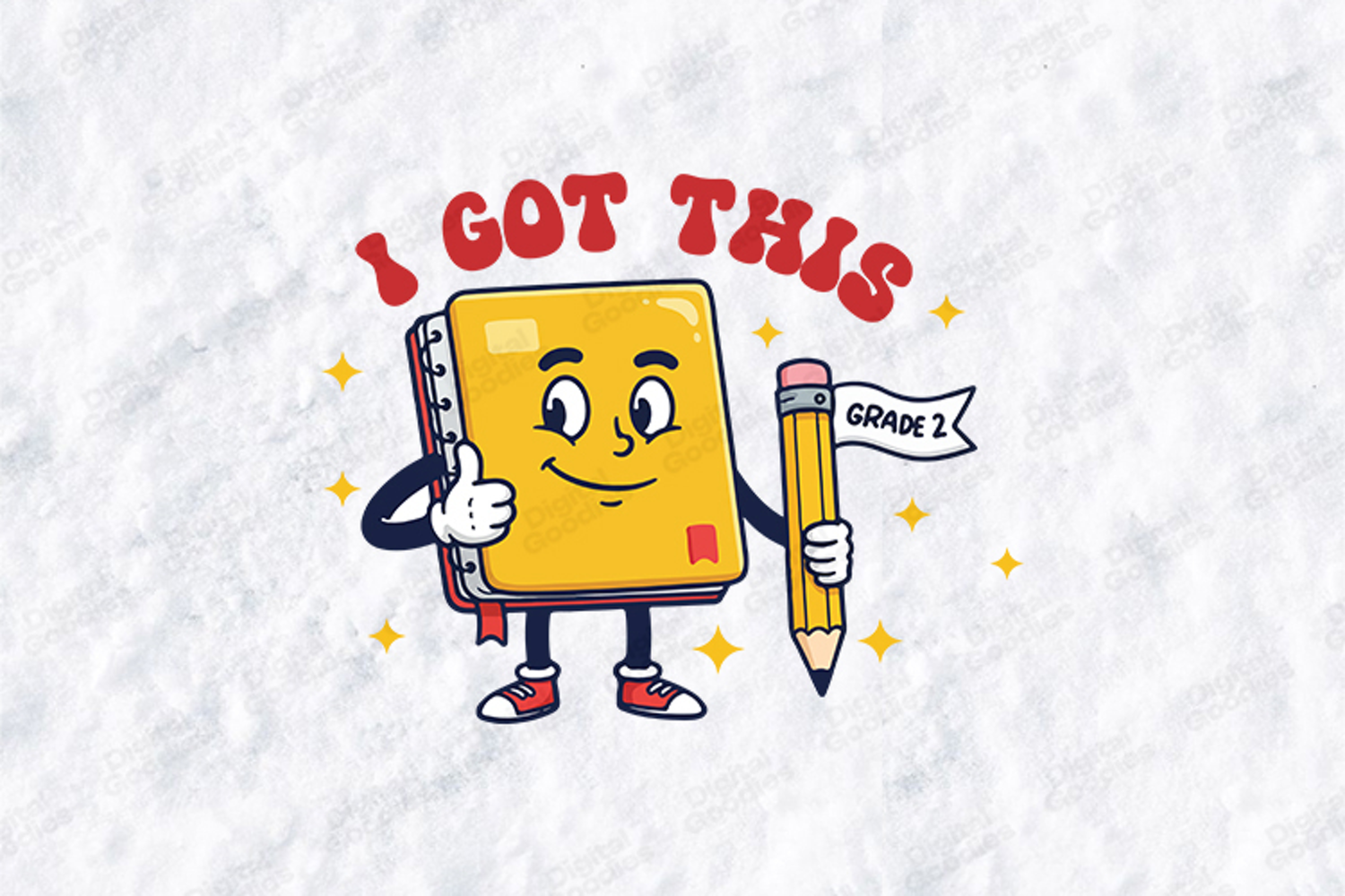 Empower your students for the new year with the "I Got This" design. This high-quality digital illustration features a confident, anthropomorphic yellow notebook character giving a thumbs-up while holding a pencil.