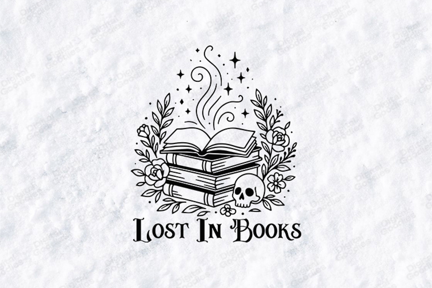 Lost In Books SVG - Gothic Bookish Skull Magic Cut File example image 1
