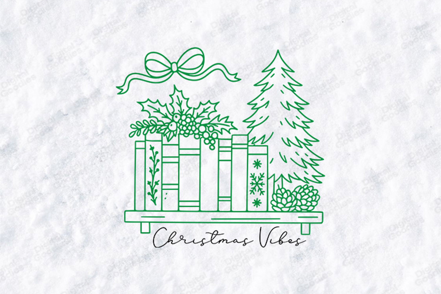 Christmas Vibes Bookshelf Line Art SVG | Book Lover example image 1