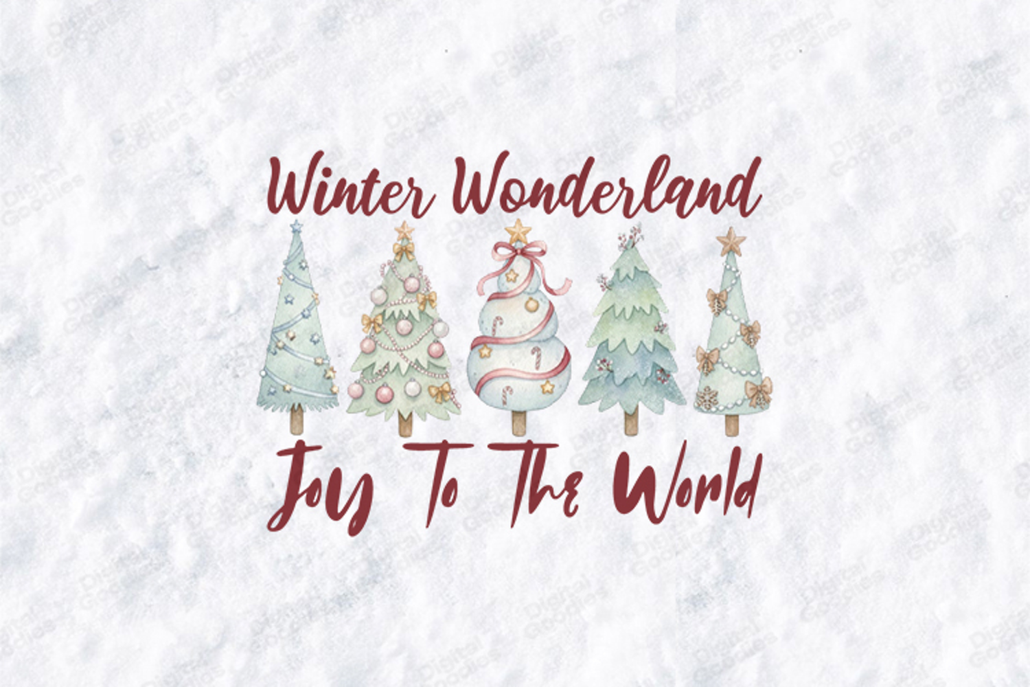 Holiday Quote Svg Winter Wonderland Joy To The World Christmas Sublimation Whimsical Trees Watercolor Holiday Winter Forest Art Festive Forest Pastel Christmas Trees Soft Christmas