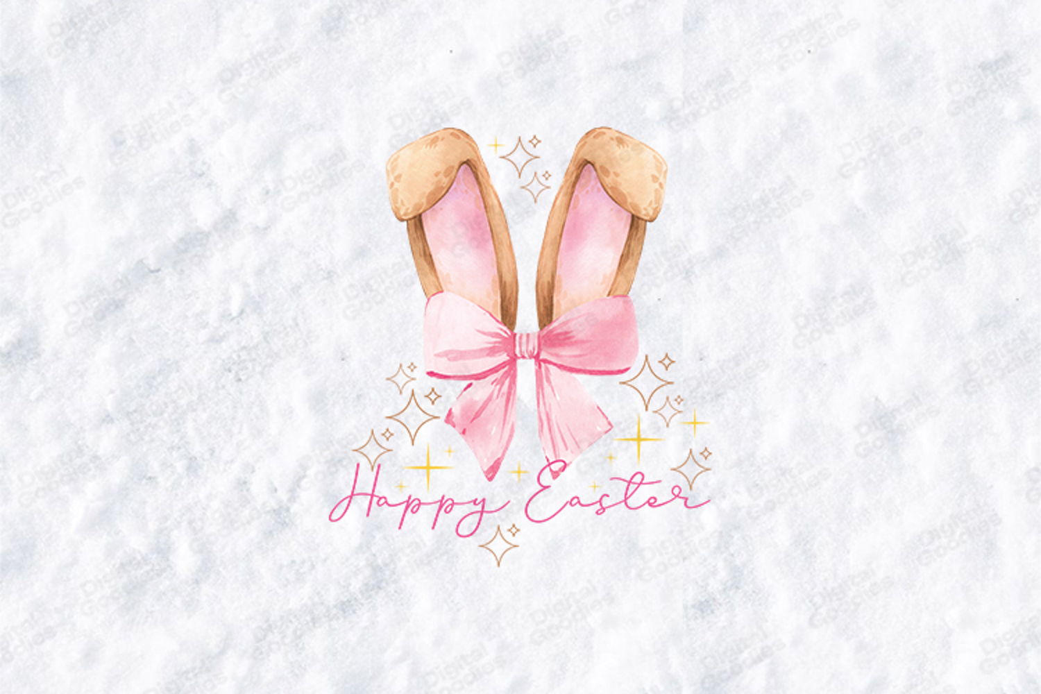 This high-quality digital illustration features hand-painted style bunny ears adorned with a delicate pink coquette bow and sparkling accents. It is perfectly suited for those looking for a modern, "clean girl" aesthetic for their Easter holiday projects.