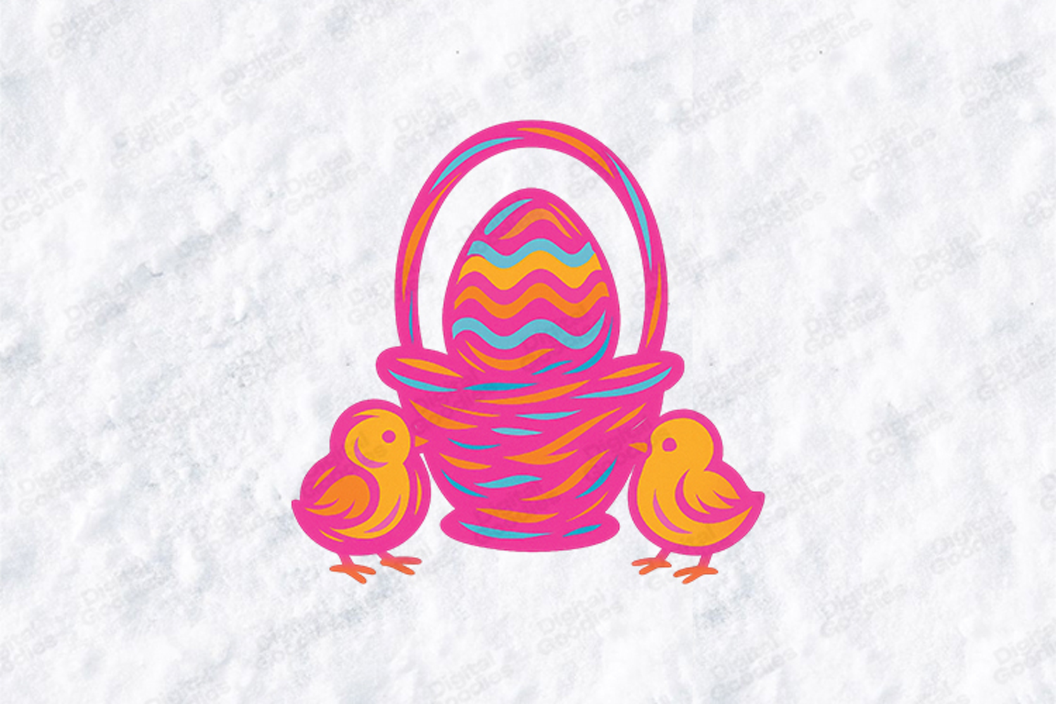 Retro Easter Egg Basket with Chicks SVG - Layered File example image 1