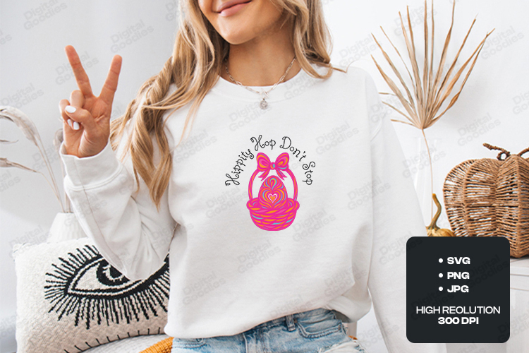 Hippity Hop Dont Stop SVG - Retro Groovy Easter Basket PNG example image 1