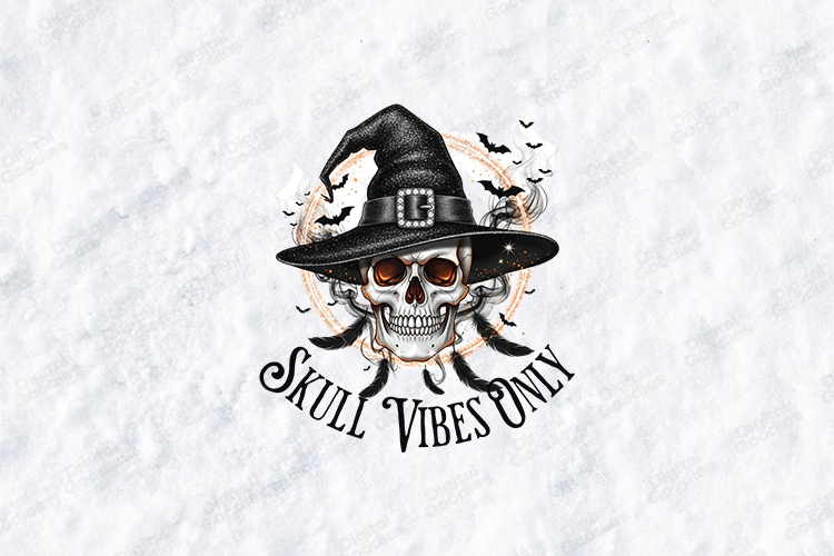 Manifest your spooky energy with the "Skull Vibes Only" retro Halloween design. This high-quality digital illustration features a masterfully detailed aesthetic that blends witchy mysticism with a modern, edgy vibe, making it perfect for creating professional-grade apparel and atmospheric seasonal decor.