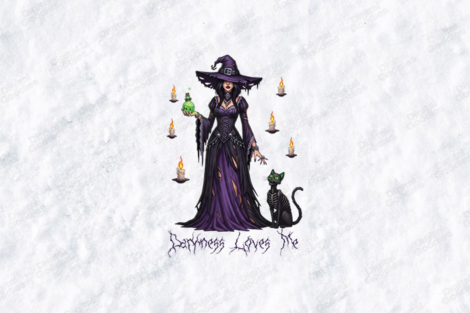 Darkness Loves Me SVG - Gothic Witch Cat Halloween Cut File example image 1