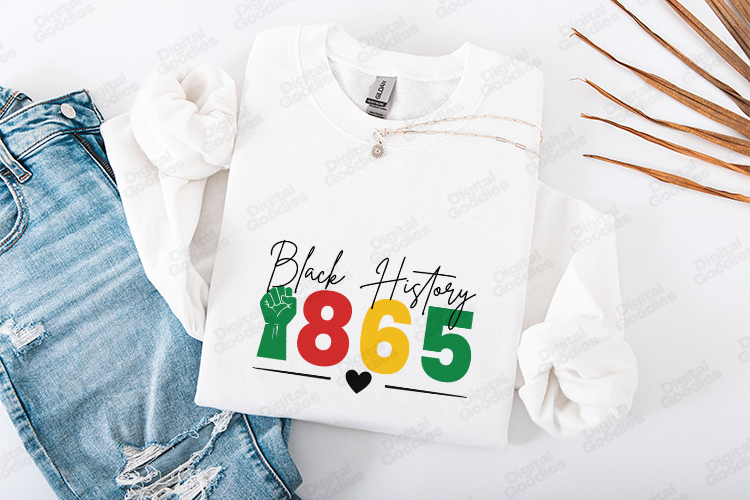 Celebrate strength and historical milestones with the "Black History 1865" power fist design. This high-quality digital illustration features a clean, symbolic aesthetic that honors the journey of liberation, making it perfect for creating professional-grade apparel, community event gear, and meaningful gifts for Black History Month and Juneteenth.
