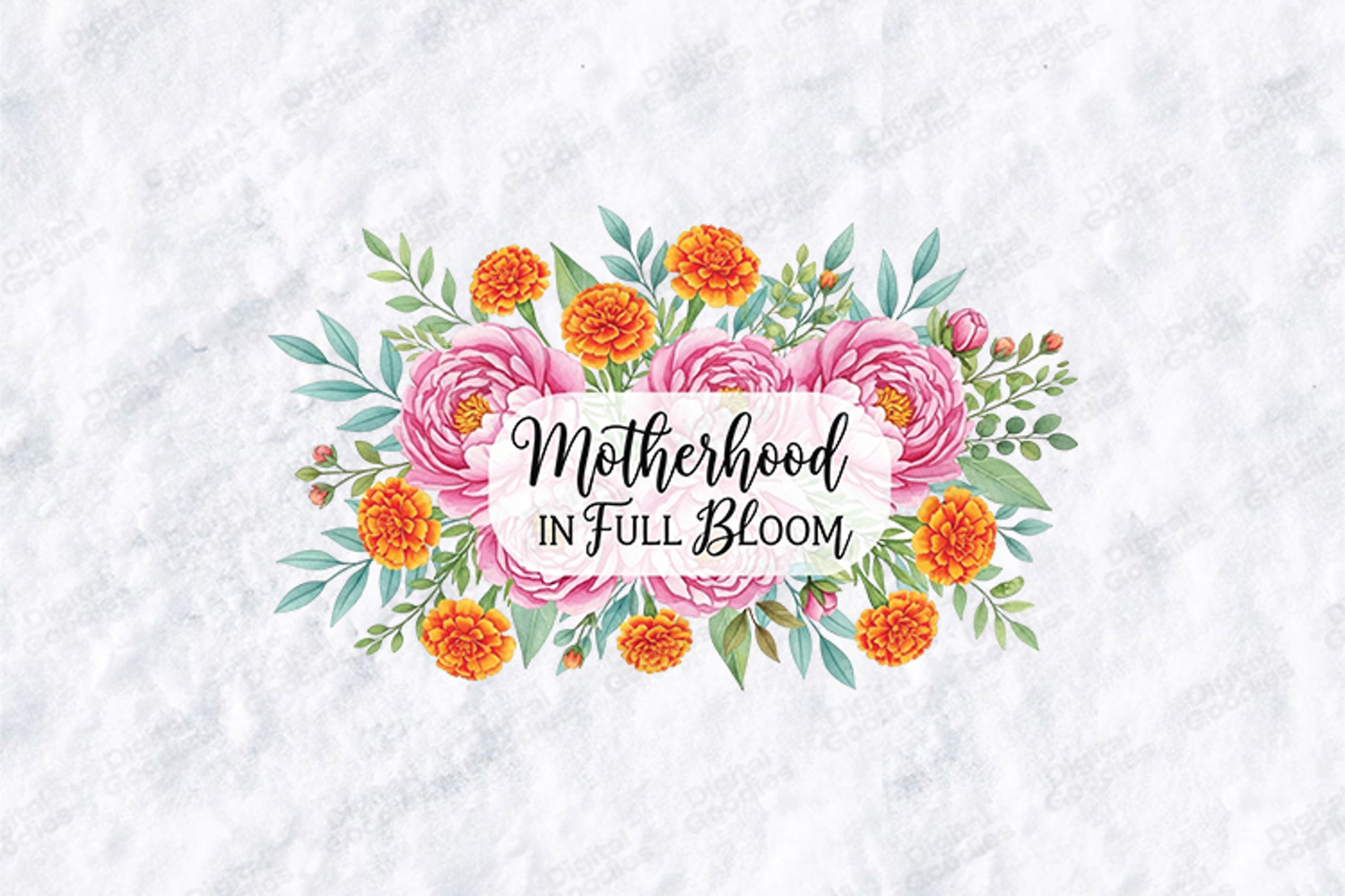 This elegant artwork combines vibrant pink peonies and orange marigolds with delicate greenery, surrounding a heartfelt quote in beautiful typography. It is the perfect choice for creating meaningful gifts for Mother’s Day, birthdays, or new arrivals.