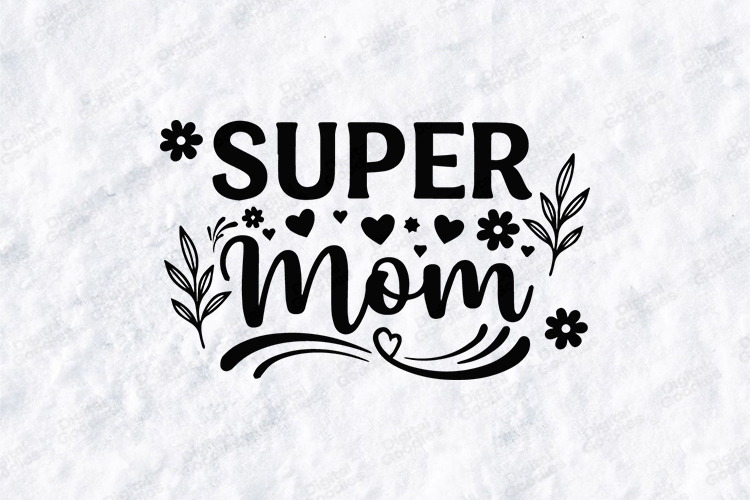 Celebrate her heroic spirit with the "Super Mom" digital design. This high-resolution graphic features bold, black-and-white typography accented by a playful scattering of hearts, cheerful daisies, and elegant leafy sprigs. This versatile SVG/PNG is perfect for creating modern t-shirts, sophisticated home decor, and empowering gifts that honor the incredible strength of every mother.