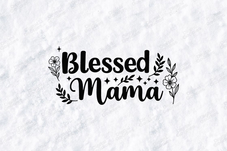 Celebrate the grace of parenting with the "Blessed Mama" digital design. This high-resolution graphic features clean, bold black-and-white typography framed by delicate floral sprigs, leafy branches, and twinkling stars. This versatile SVG/PNG is perfect for creating modern t-shirts, sophisticated home decor, and heartwarming gifts that honor the blessed journey of motherhood.