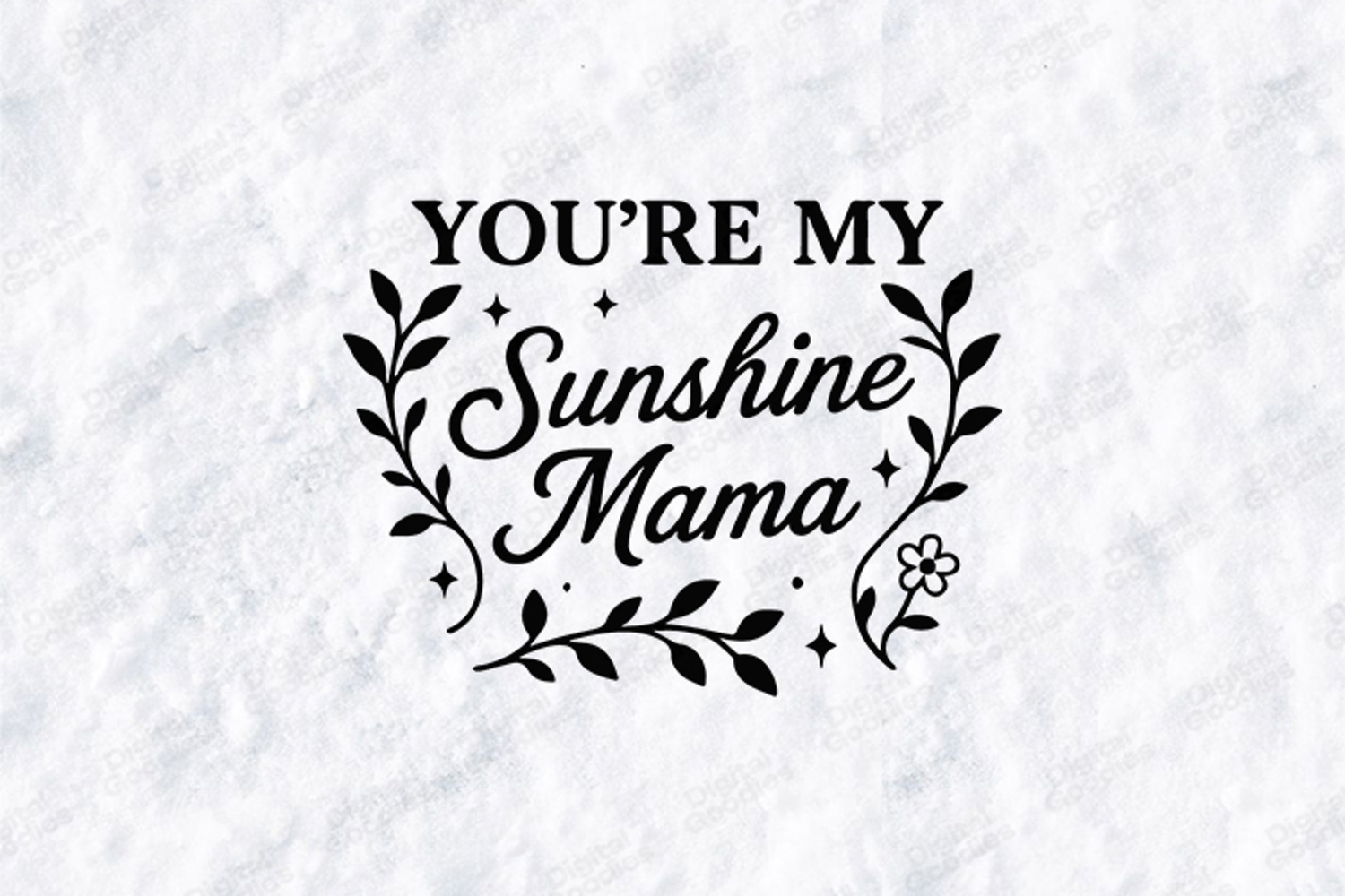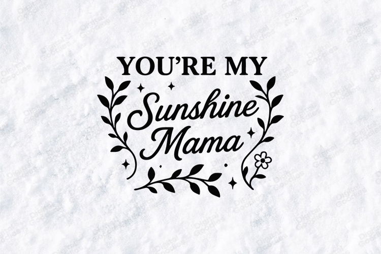 Celebrate the warmth of family with the "You're My Sunshine Mama" digital design. This high-resolution graphic features a delightful blend of bold and script typography, framed by elegant leafy branches, delicate floral sprigs, and twinkling celestial stars. This versatile SVG/PNG is perfect for creating modern t-shirts, cheerful home decor, and heartfelt gifts that remind Mom she is the light of your life.