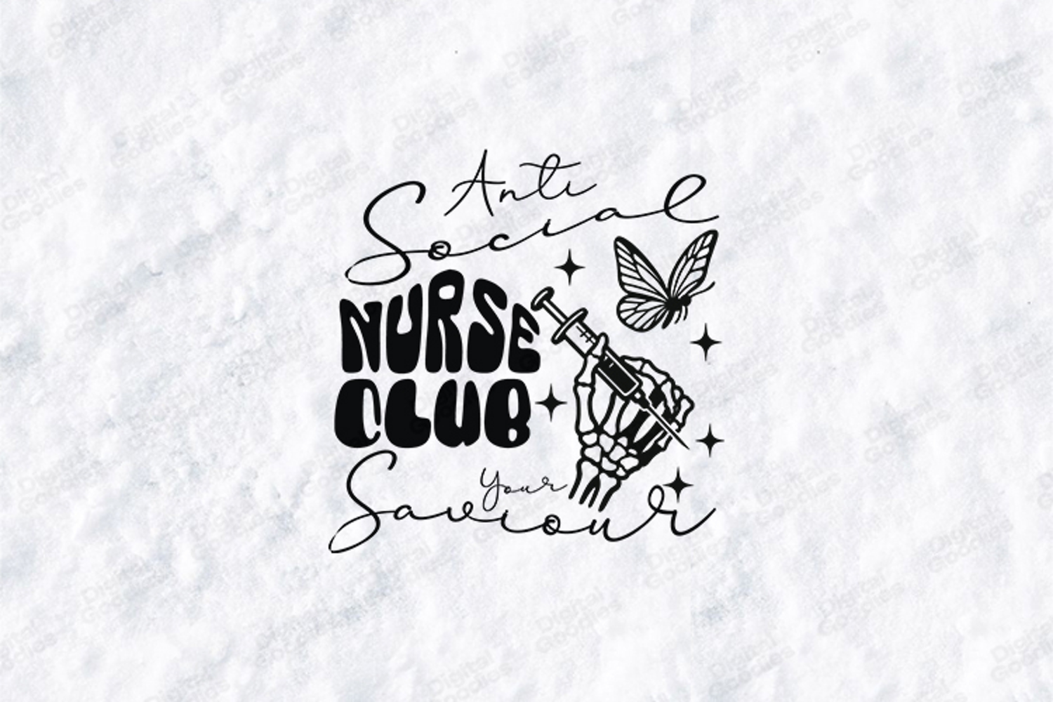 Anti Social Nurse Club SVG - Skeleton Hand Savior Cut File example image 1