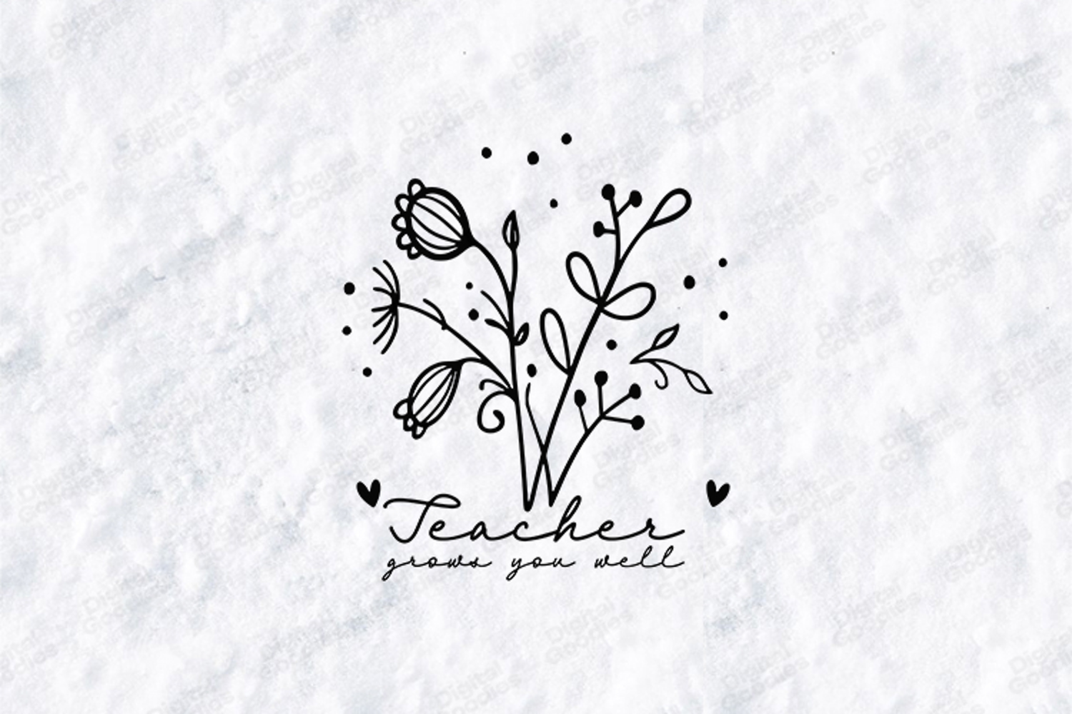 Back To School Teacher Appreciation Hand Drawn Floral Classroom Decor Wildflower Svg Floral Teacher Svg Educator Gift Teacher Grows Well Botanical Teacher Nature Teacher Svg