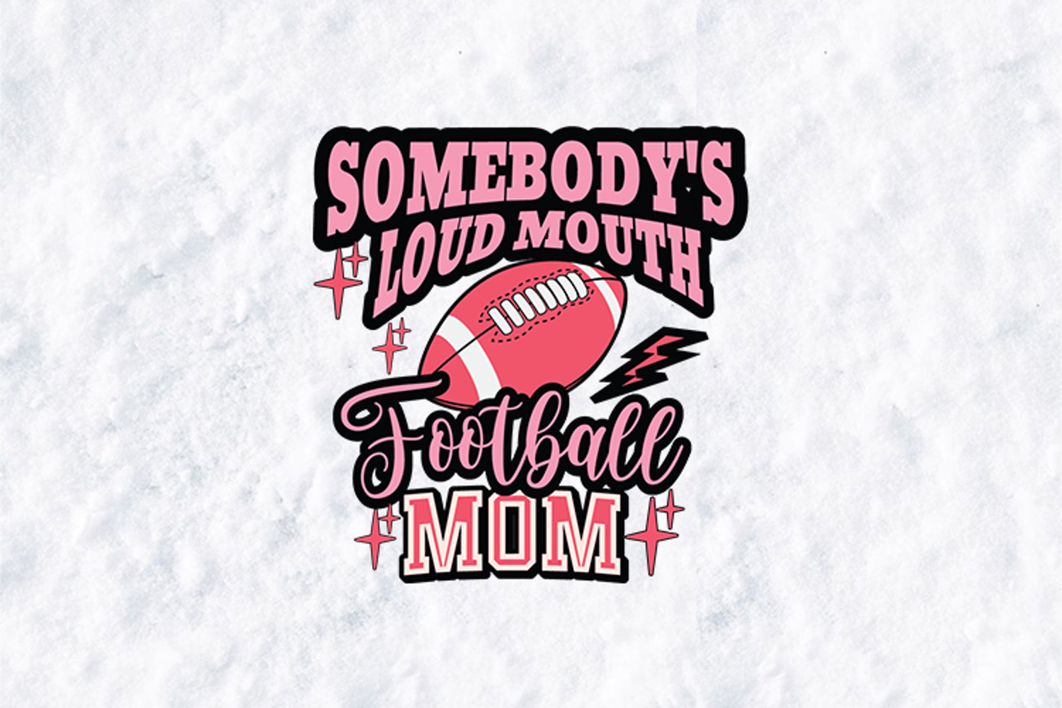 Designed specifically for the proudest (and loudest) moms in the bleachers, this vibrant pink and black graphic is a must-have for the upcoming football season. The playful typography combined with retro starbursts and a classic football makes it a standout choice for custom gameday apparel.