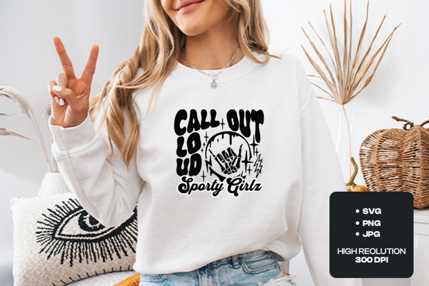 Retro Call Out Loud Sporty Girlz Skeleton Hand SVG Design example image 1