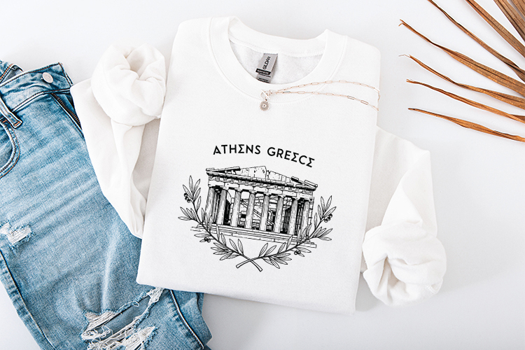 Travel back in time with this elegant Athens, Greece digital design! Featuring a high-detail illustration of the iconic Parthenon, framed by a classic olive branch wreath, this graphic perfectly captures the spirit of ancient history and Mediterranean beauty.