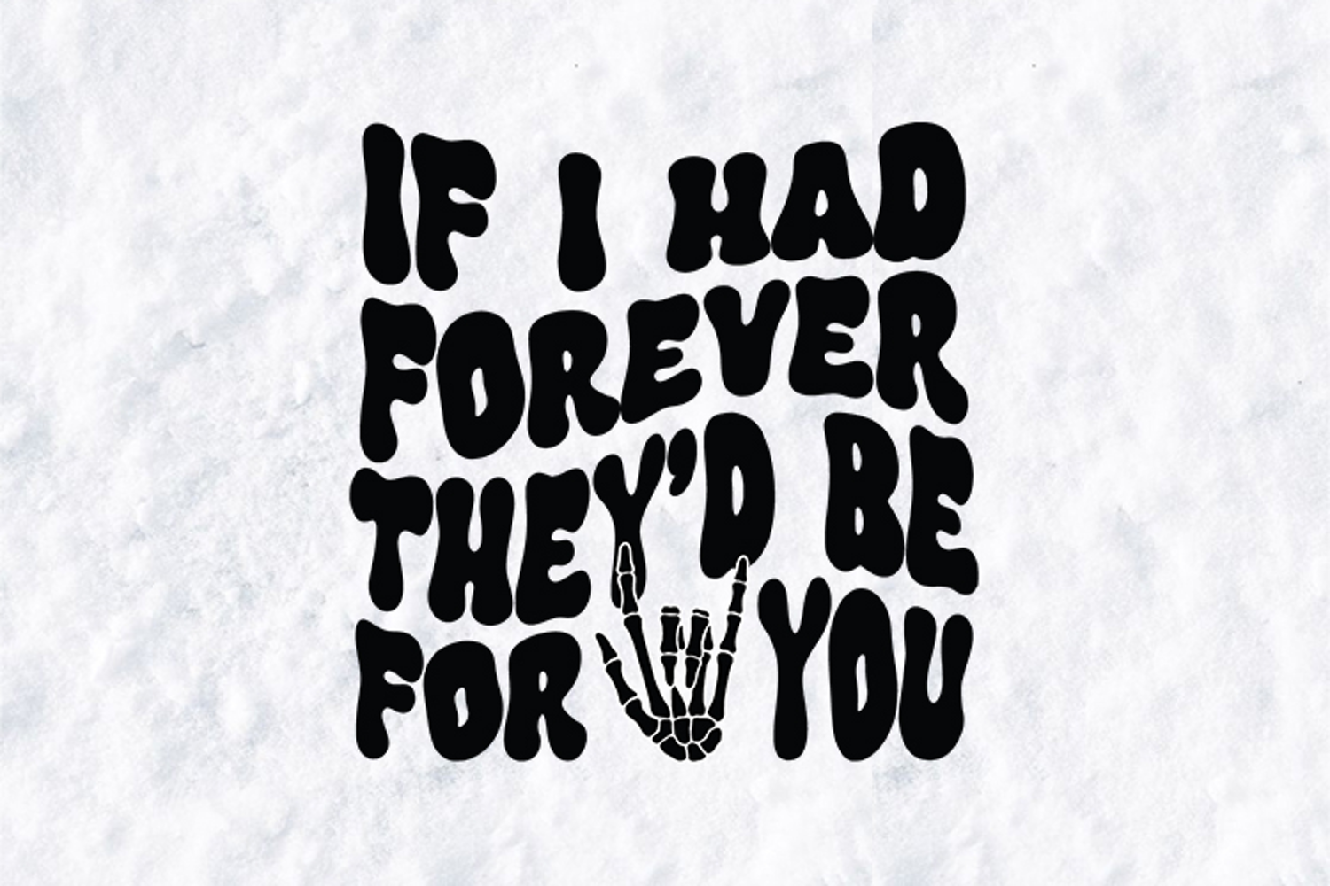 This digital graphic features the romantic sentiment "If I Had Forever They'd Be For You" in a trendy, bubbly retro font. Paired with a skeleton hand making the iconic "rock on" sign, it is the perfect choice for couples who prefer a gothic or alternative aesthetic over traditional hearts.
