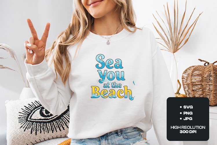 Make a splash with this playful "Sea You at the Beach" typography design. This graphic features a creative water-texture effect within the letters and charming wave accents, making it a must-have for any coastal-themed project.