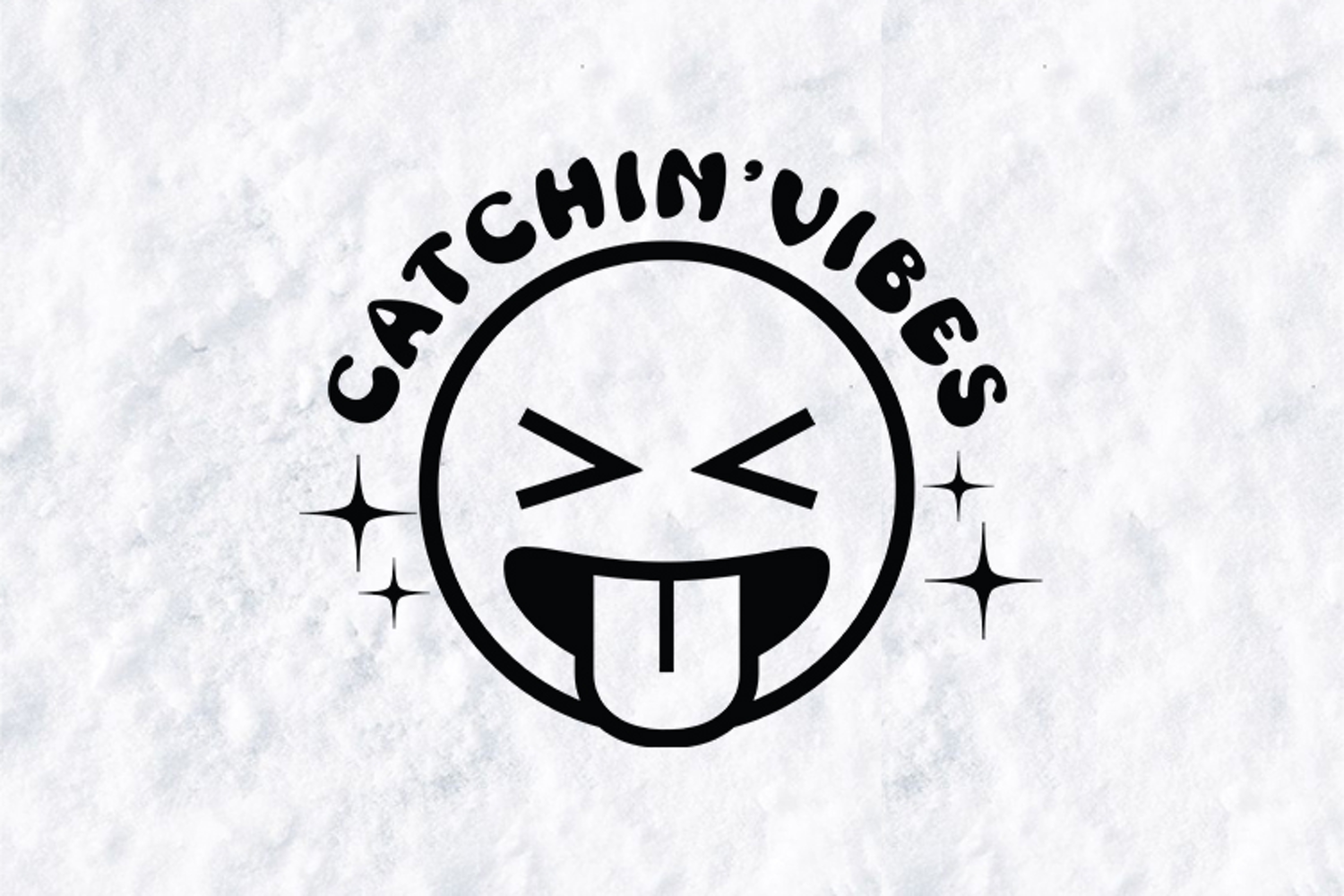 Spread the energy of summer with this Catchin' Vibes Emoji Sublimation Design. This high-quality digital graphic features a playful, expressive emoji face with its tongue out and squinting eyes, surrounded by a stylish "Catchin' Vibes" curved typography and twinkling stars.