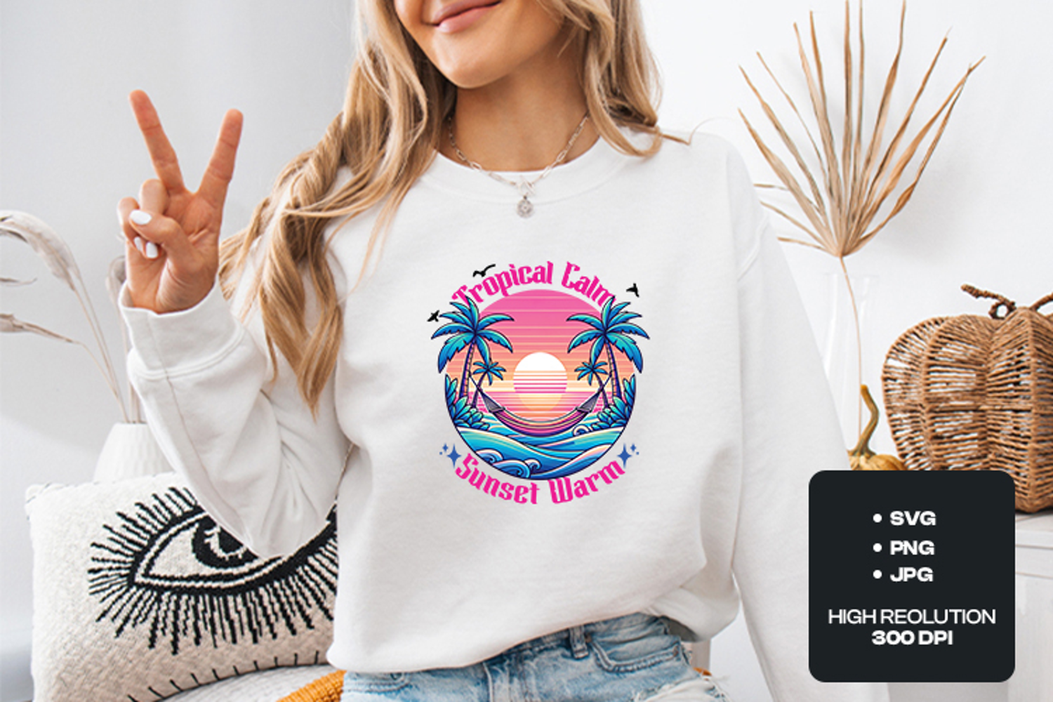 Cricut Cut File Palm Tree Clipart Tropical Sublimation Retro Sunset Svg Summer Vacation Diy Tropical Calm Svg Sunset Warm Png Hammock Beach Art Coastal Relaxation Ocean Breeze Art