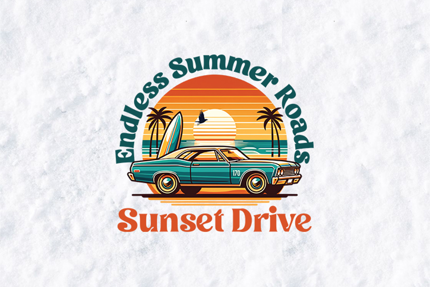 Endless Summer Roads SVG - Retro Sunset Drive & Surfboard