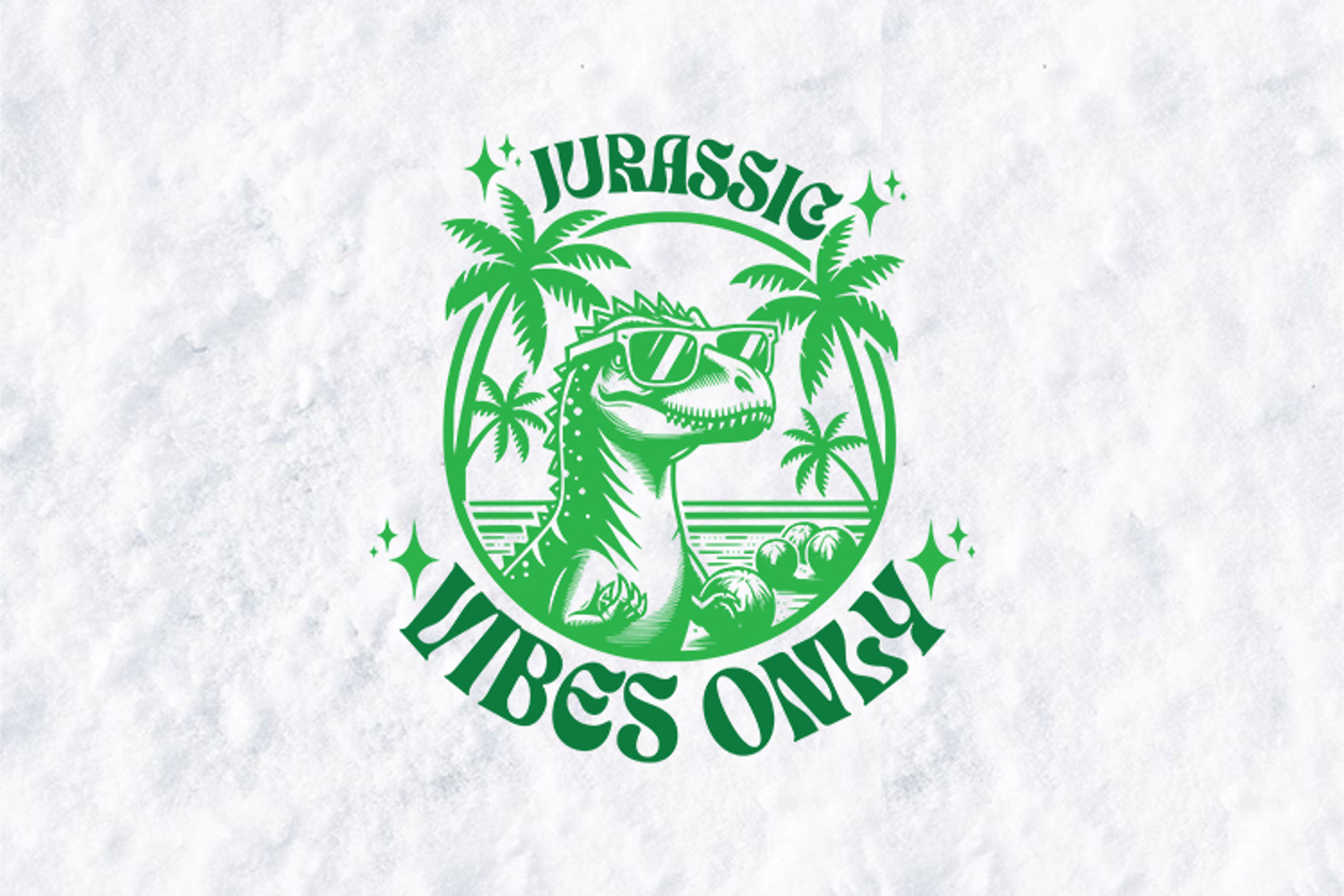 Add a prehistoric twist to your summer crafts with this "Jurassic Vibes Only" digital design! This hilarious and trendy graphic features a cool T-Rex wearing sunglasses, surrounded by tropical palm trees and beach elements within a circular badge. It is the perfect choice for creating fun, standout summer apparel for kids and adults alike.
