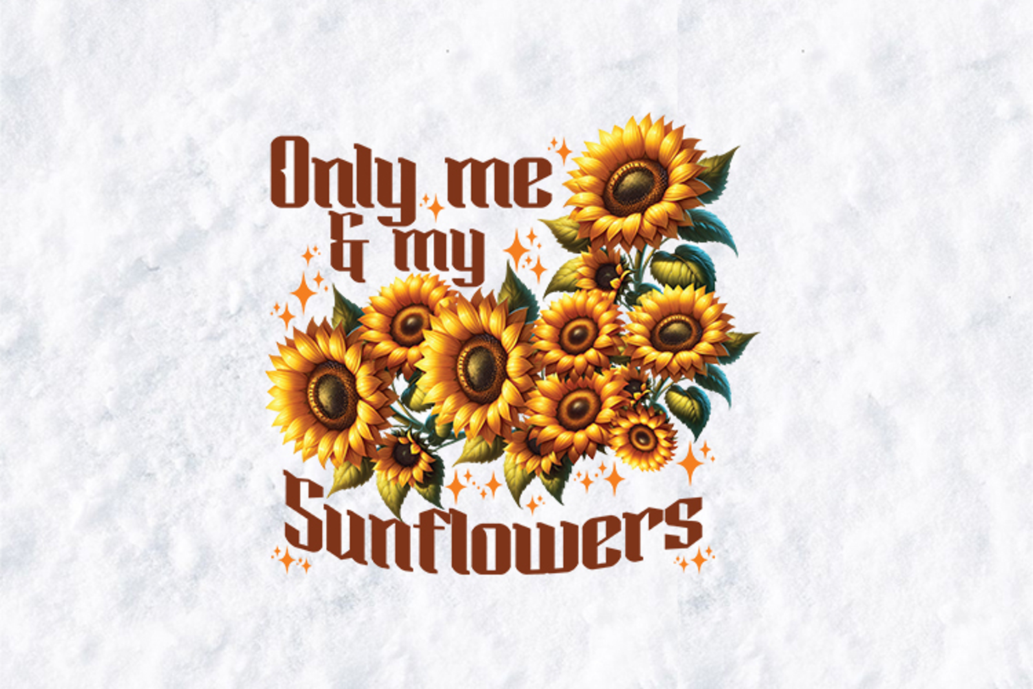 Embrace the warmth and beauty of nature with this "Only Me & My Sunflowers" digital graphic. This design features a stunning, lush bouquet of highly detailed sunflowers accented with playful retro sparkles and bold, gothic-inspired typography. It is the perfect statement piece for gardeners, florists, and anyone who finds peace in a field of gold.