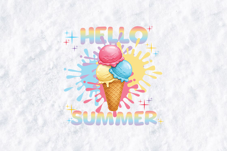 Celebrate the sweetest season with the "HELLO SUMMER" digital design. This high-resolution graphic features a delicious triple-scoop ice cream cone set against a vibrant pink, yellow, and blue paint splash. With its playful rainbow-gradient typography and twinkling star accents, this versatile SVG/PNG is perfect for creating joyful summer t-shirts, vibrant party decor, and fun seasonal gifts.