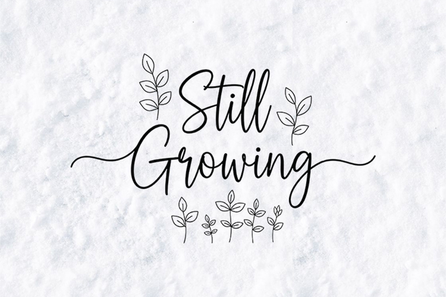 Embrace the beauty of progress with this "Still Growing" digital design. This elegant artwork features delicate hand-drawn leafy sprigs and a sophisticated mix of modern script and serif typography. It is a gentle reminder of growth, resilience, and the power of taking things one day at a time.