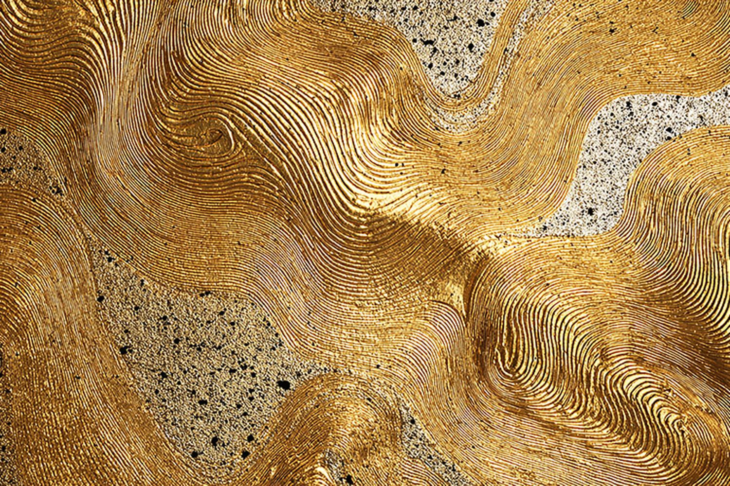 The luxurious and elegant feel of the metallic surface, which appears to be smooth and shiny. The abstract design makes for a creative and unique visual statement, perfect for use in various artistic and design applications.