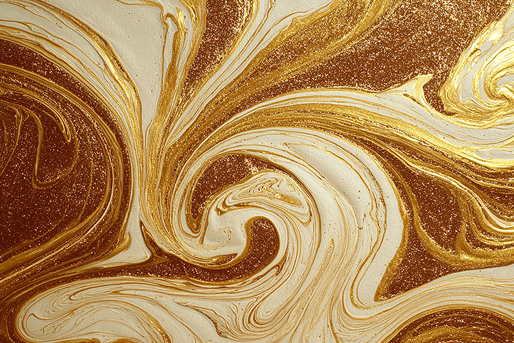 Swirling gold & white marble patterns on a brown background