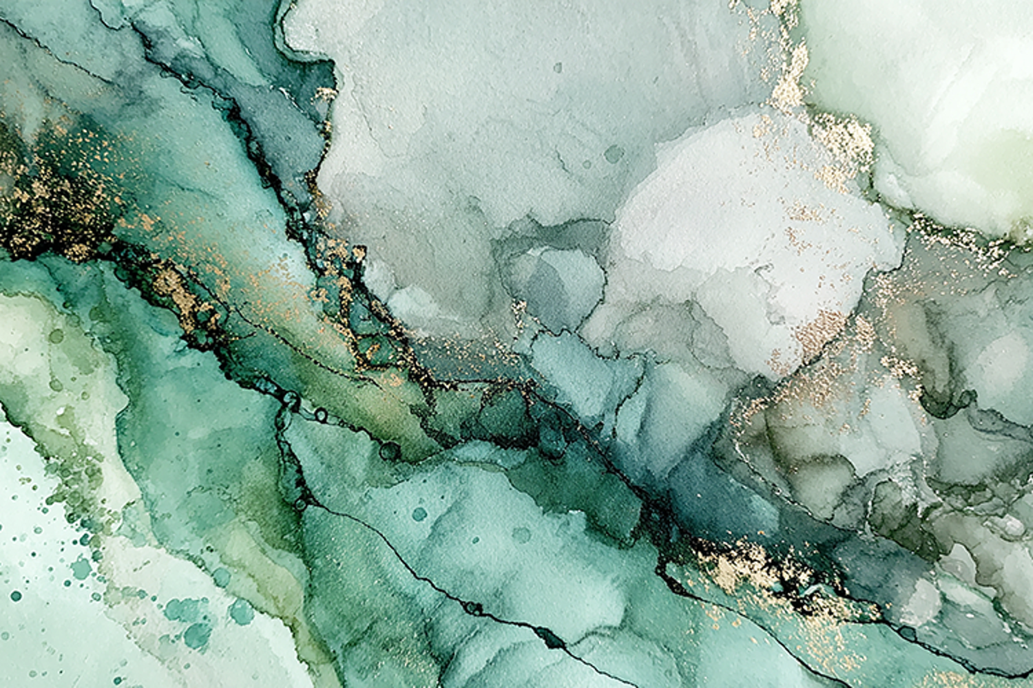 Shades of green and gold on a white background.creating a visually striking piece that exudes elegance and sophistication. The abstract design makes it a perfect addition to any modern space, adding a touch of luxury and creativity to the room. The painting's vibrant colors and artistic expression make it a beautiful and inspiring piece that can spark imagination and creativity.