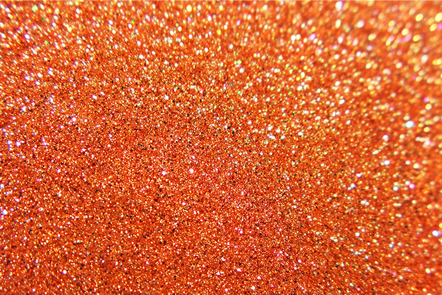 Orange glitter texture, showcasing its sparkling particles and shiny appearance. The glittery surface is perfect for use in various creative projects, such as crafting, art, and design. Its festive and celebratory feel makes it ideal for party decorations, luxury products, and beauty-related applications.