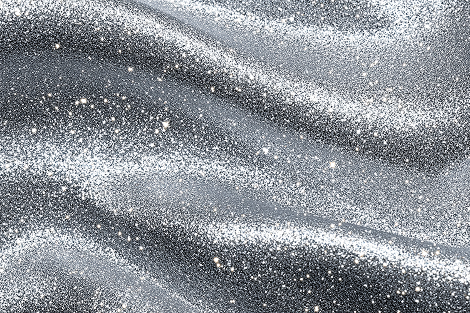 A sparkling silver glitter texture with a wavy pattern. The glitter is densely packed and reflects light, creating a shimmering effect. The wavy pattern adds a sense of movement and energy to the image. The overall effect is one of luxury and glamour, making this image suitable for use in a variety of creative projects.