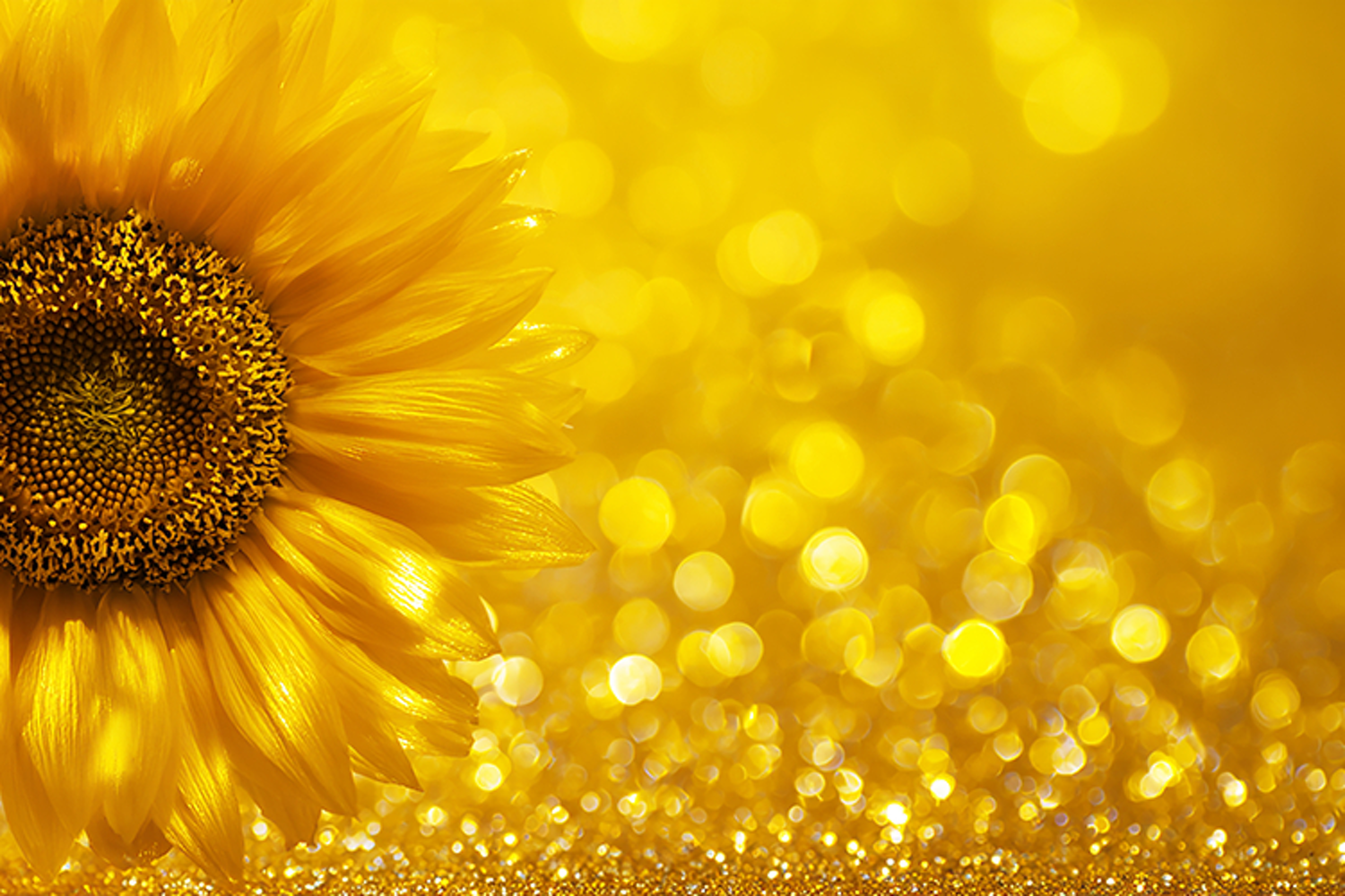 A stunning sunflower with large, bright yellow petals and a dark center, set against a vibrant yellow background with bokeh lights. The sunflower is the main focus of the image, with its delicate petals and intricate center details. The background is a warm and inviting yellow, with bokeh lights adding a sense of depth and texture to the image. The overall effect is one of beauty, optimism, and hope.