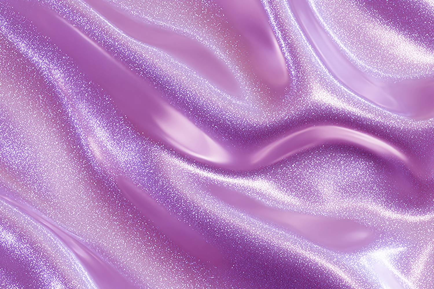 A shimmering purple fabric, highlighting its smooth and luxurious texture. The fabric appears to have a glittery, sparkly effect that catches the light, giving it a metallic sheen. The silky material seems to be draped in elegant folds, creating a sense of movement and flow. The overall effect is one of sophistication and glamour, making this fabric perfect for high-end fashion designs or luxurious interior decor.