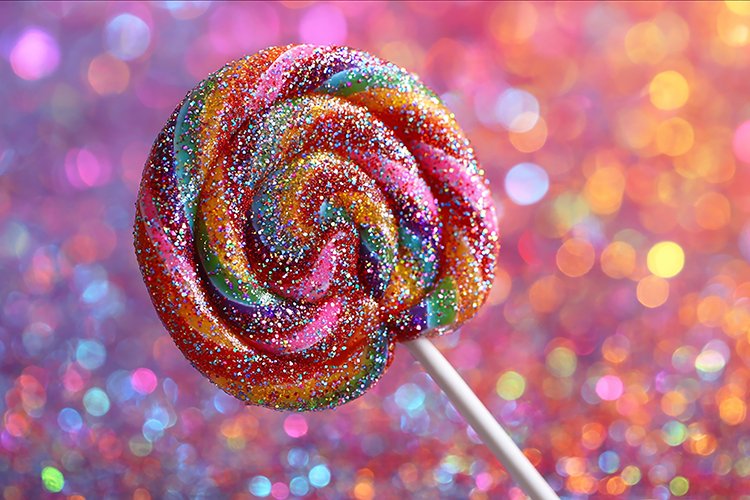 A colorful lollipop with sprinkles