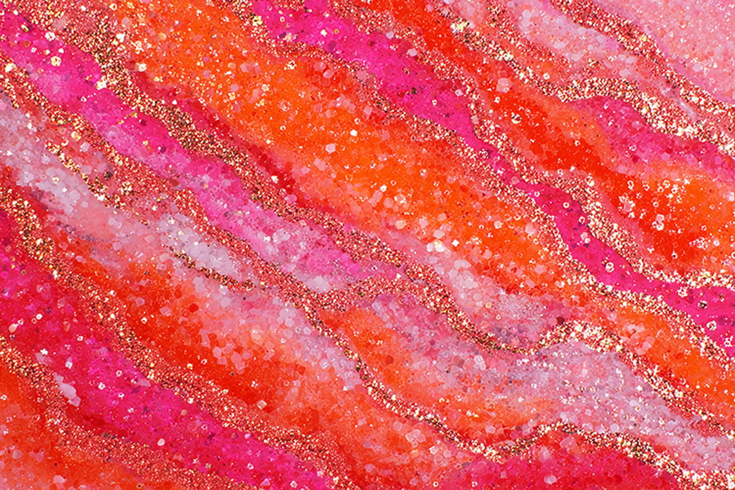The glittery texture and sparkling particles add a touch of luxury and festivity to the overall aesthetic. The pink, orange, and red hues create a warm and inviting atmosphere, while the gold accents add a sense of sophistication and elegance. This image would be perfect for use in creative projects, such as graphic design, digital art, or even as a background for a website or social media post.
