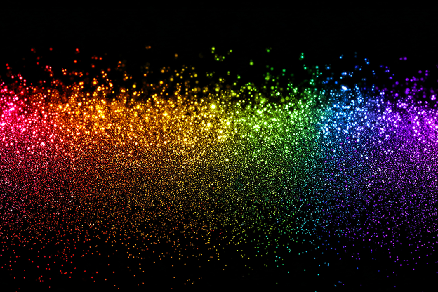 A stunning rainbow of colorful particles scattered across a dark background, creating a mesmerizing display of light and color. The particles sparkle and shine, radiating a sense of vibrancy and energy. The dark background serves to accentuate the colors, making them appear even more vivid and intense.