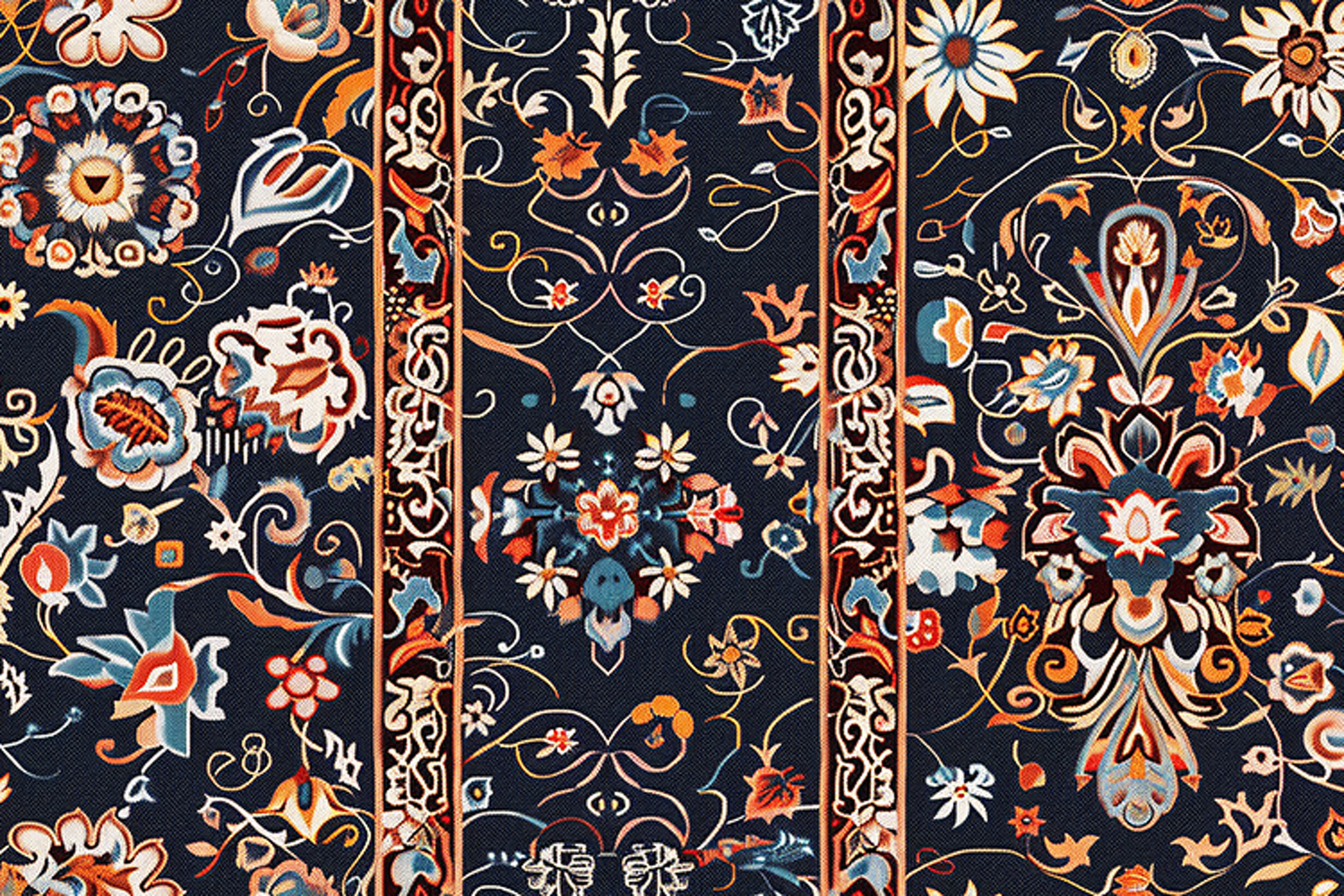 Floral patterned fabric with intricate designs and colors set against a dark background. The vibrant and colorful pattern features a mix of flowers, leaves, and other ornate details, creating a visually striking and elegant design. The fabric appears to be a high-quality, luxurious textile, perfect for use in fashion, decoration, or art projects. The intricate details and traditional style of the pattern evoke a sense of cultural heritage and artistic expression.