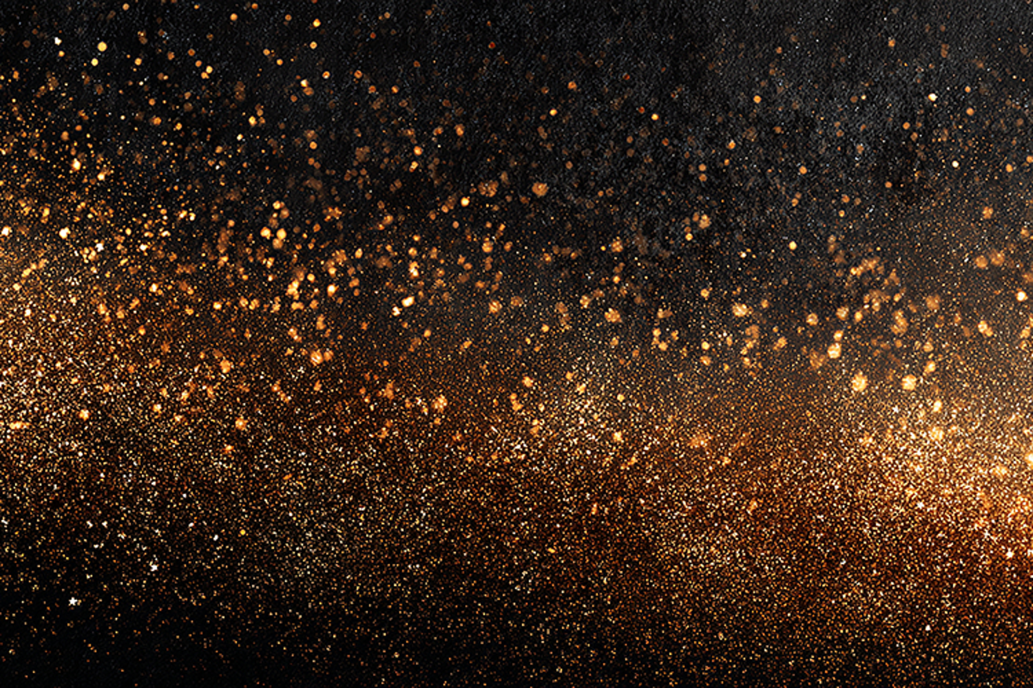 A dark background with gold glitter particles scattered across it, creating a festive and celebratory atmosphere. The shiny dots and glittery texture give the image a luxury feel, perfect for party decorations, special events, or high-end designs. The gold sparkles add a touch of elegance and sophistication, making this image ideal for a variety of creative projects.
