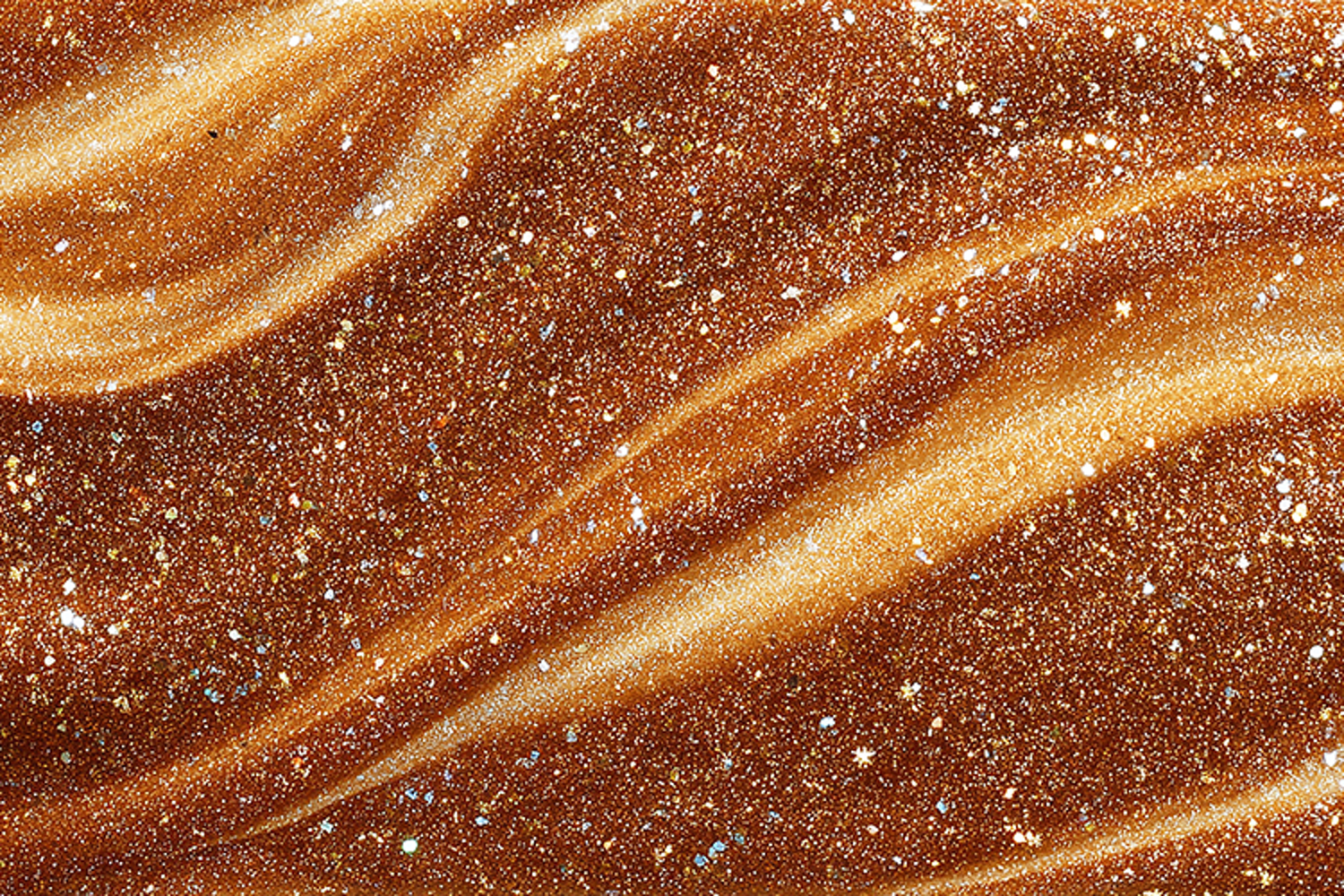 A glittery brown surface, featuring a textured, sparkly finish with swirling patterns. The brown color provides a rich backdrop for the sparkling effect, which adds a touch of luxury and glamour. The abstract design makes it suitable for use in various creative projects, such as beauty and cosmetic product design, artistic endeavors, or modern decorative applications.