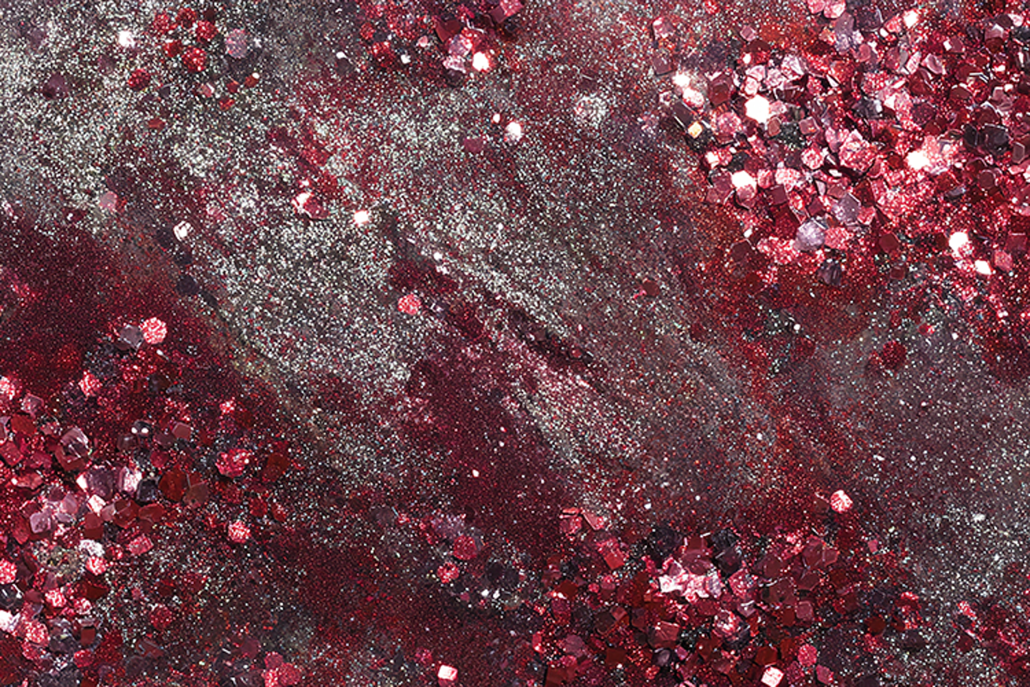 Red and silver glittery background, adorned with sparkling sequins and a shimmering texture. The vibrant colors evoke a sense of celebration and luxury, perfect for use in designs related to fashion, beauty, cosmetics, and festive decorations. The abstract art piece exudes glamour and creativity, making it an ideal choice for various creative projects.