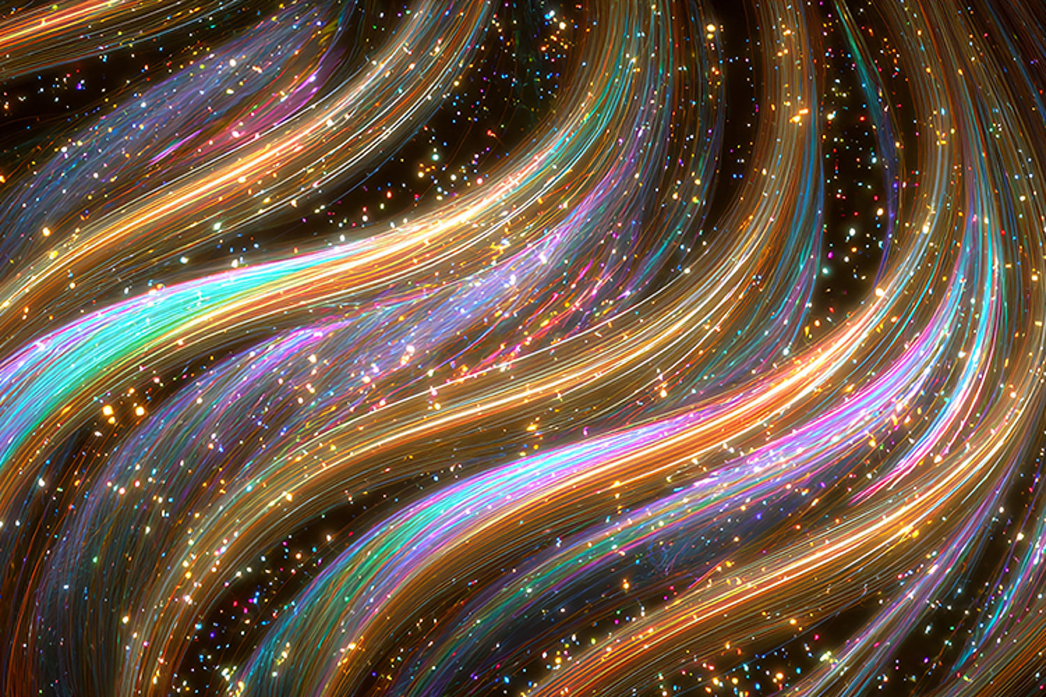 Swirling lights on a dark background with sparkles