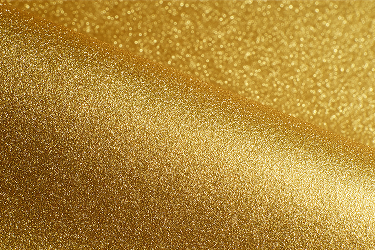 Gold glittery surface with a smooth and shiny texture