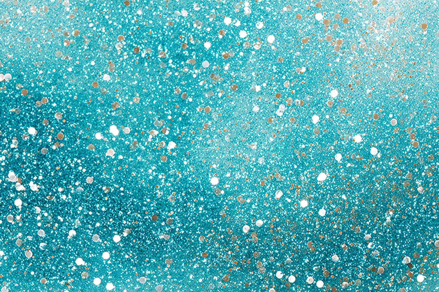 Bright turquoise background covered in a multitude of small white and gold glitter speckles. The vibrant and festive texture is perfect for use in various design projects, such as holiday cards, party invitations, or digital backgrounds. The shiny and decorative appearance of the glitter adds a celebratory feel to any design.